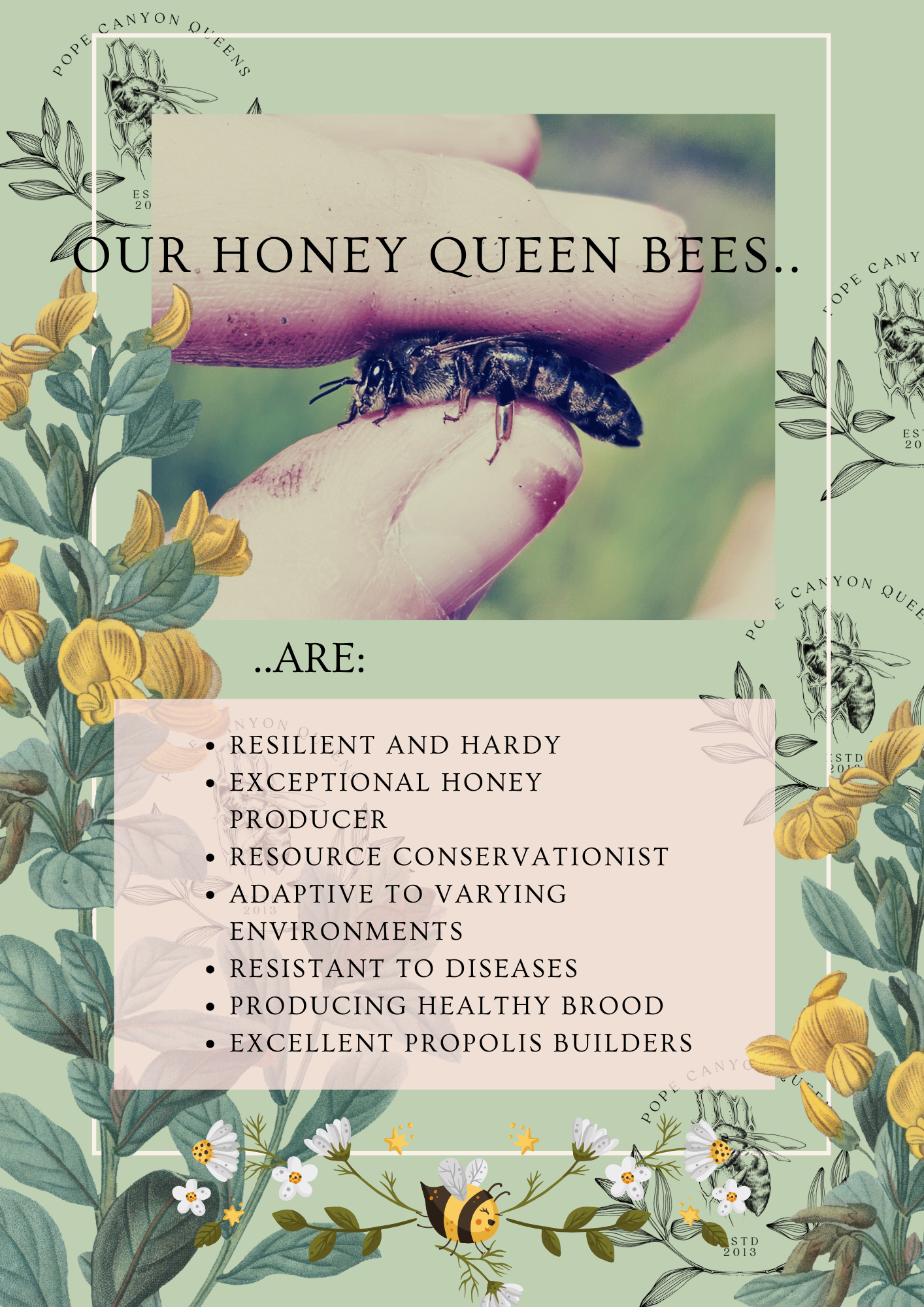 Queens are available from end of March - September, weather permitted.